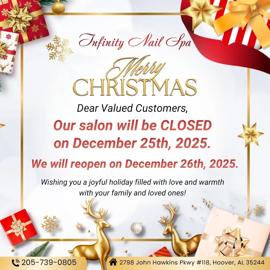Infinity Nails Spa is one of the best nail salons located in Hoover, AL 35244. The comfortable atmosphere we create will make you feel better after a hard-working day.
